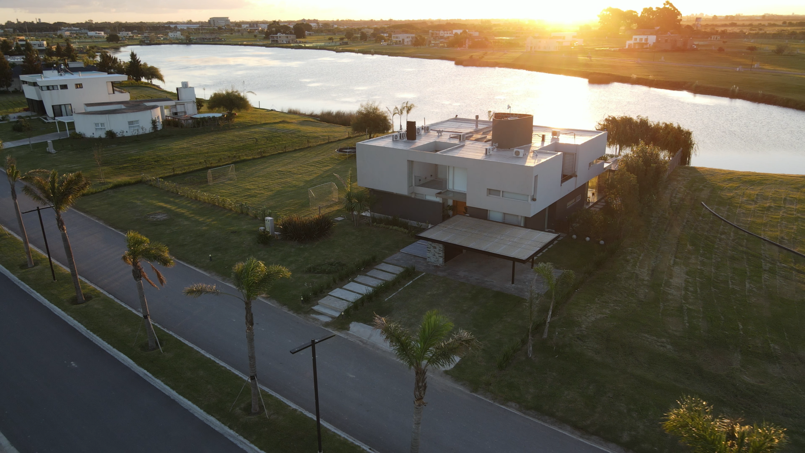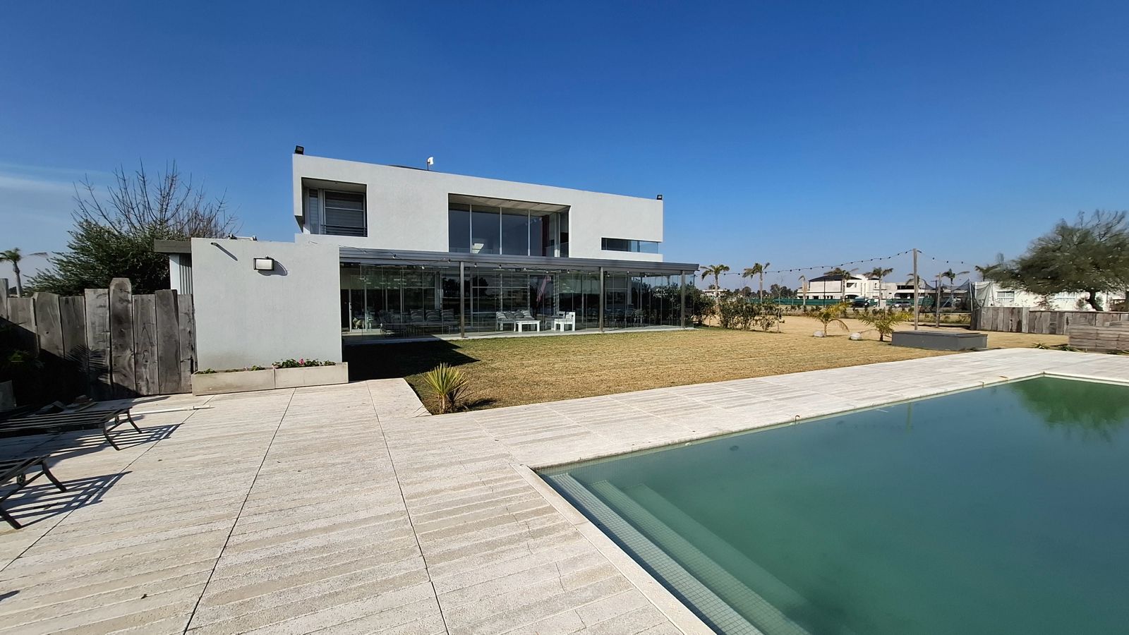 Planta Alta: Dispone de dos dormitorios con sus respectivos vestidores y baño compartido, ambos con balcón. El dormitorio principal cuenta con un amplio vestidor y baño en suite. El jardín fue diseñado para el disfrute pleno, con espacios de baulera, vestidores y baños externos ideales para acompañar la experiencia de la piscina. Además, la propiedad cuenta con muelle propio sobre la laguna. Diferenciales: Casa sobre lote con fondo a la laguna Orientación noroeste Ubicación sobre calle principal Estilo moderno El barrio se encuentra sobre la Autopista Buenos Aires – La Plata, a la altura del km 30,5, lindero al emprendimiento Pueblos del Plata, con acceso directo desde la autopista, como también desde Av. Kirchner por calle 47. Sobre un predio de 360 hectáreas se desarrolla un emprendimiento de usos mixtos, que combina un sector residencial unifamiliar y multifamiliar con áreas comerciales y profesionales, en distintas etapas.