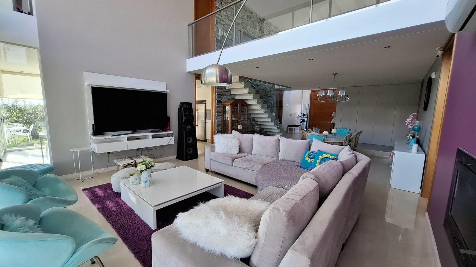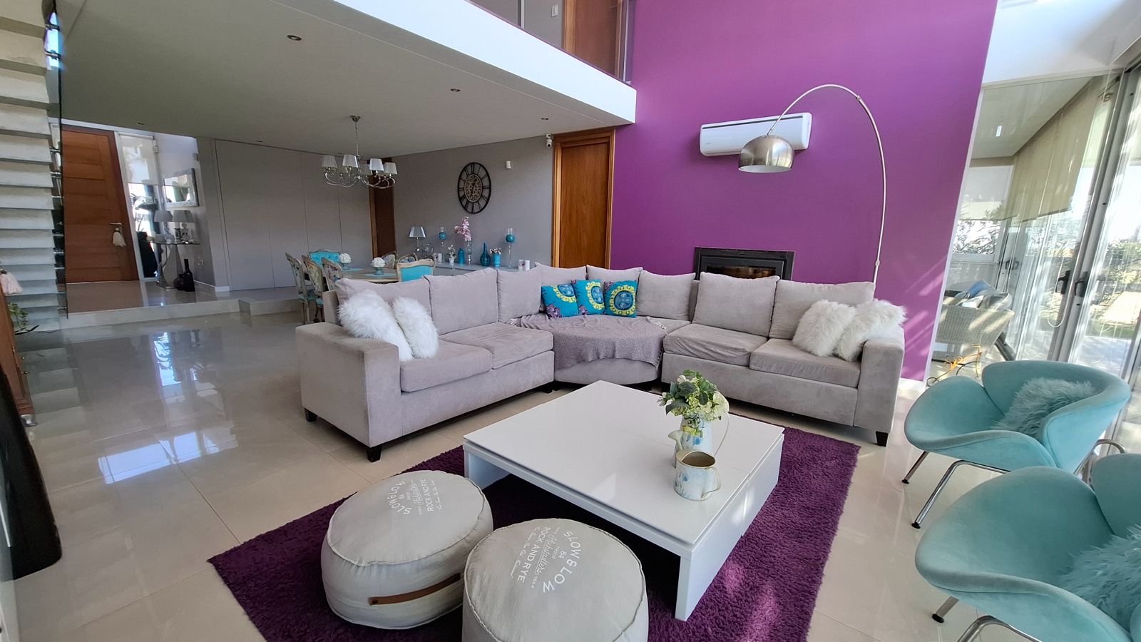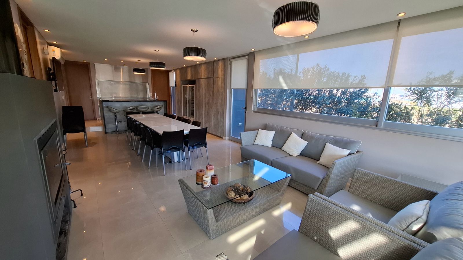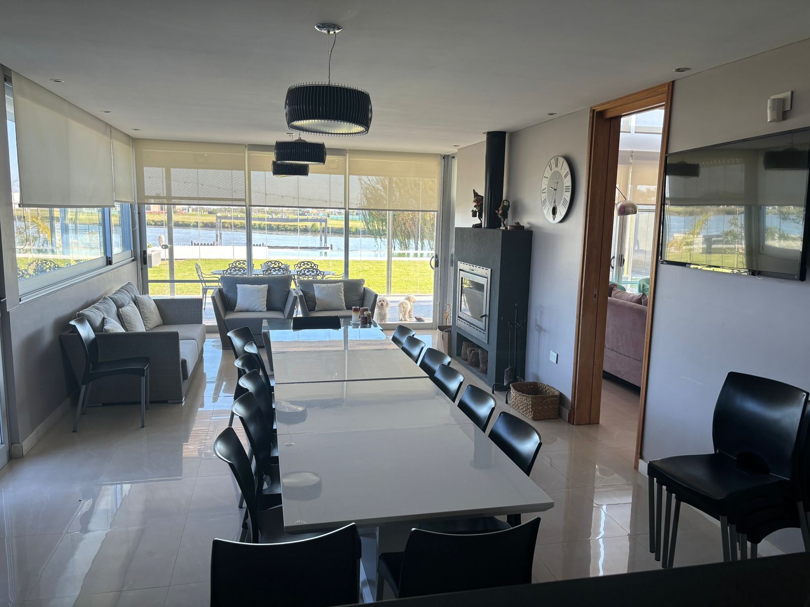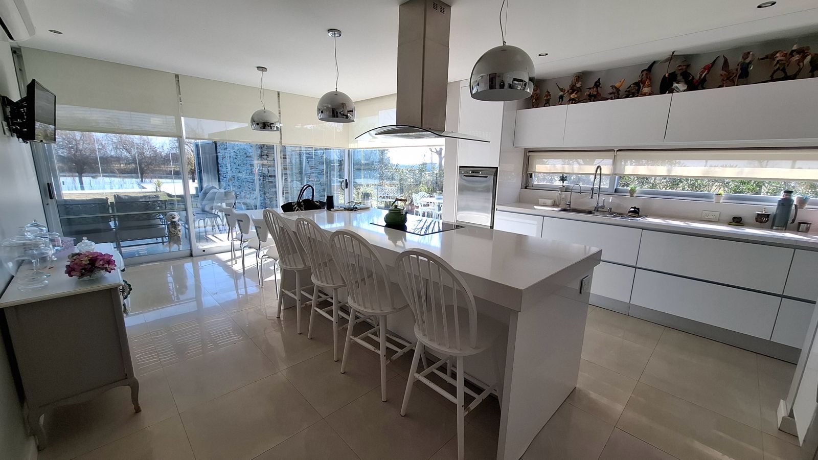 La propiedad fue diseñada en dos plantas, con un hall de entrada de doble altura. Todo el diseño está orientado a maximizar la vista hacia la laguna desde cualquier punto de la planta baja, gracias a un excelente trabajo de ventanales que integran interior y exterior.